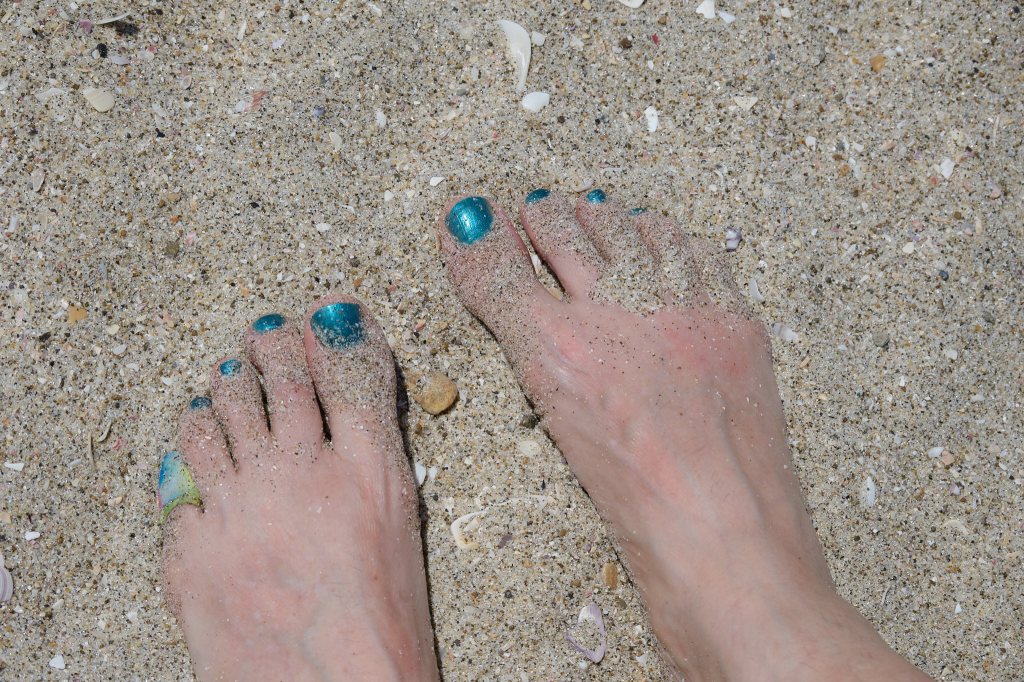 And now the sun is down. My toes are bandaged. Our laundry is done and our cozy bed is made. We can hear the surf. And it is lulling us to sleep.