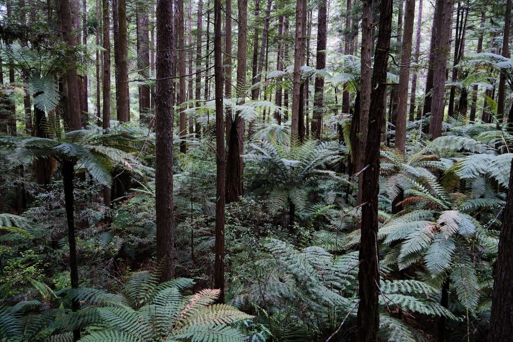 Just off a highway of shopping malls is a tall and dense redwood forest! About 100 years ago, as New Zealand was becoming deforested, someone planted some California redwoods, hoping to build a lumber industry with them. Turns out that when grown here, the wood of the tree was softer than in their native California. Still, breeds were established and so was the business.