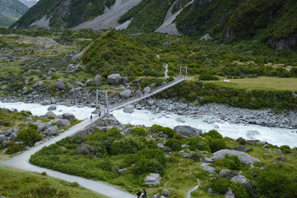 Hooker Valley track has steps, boardwalks covered with chicken wire for traction, one bathroom stop and well trodden paths of pale, firm soil. Not a difficult trail to hike.