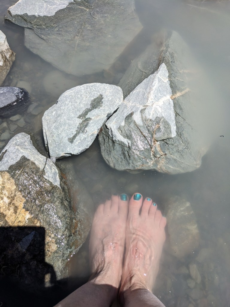 The sun was full and shade sparse. Hundreds of people were picnicking. Some of them stripping to take a dip in the frigid milky gray water. They didn’t swim for long!