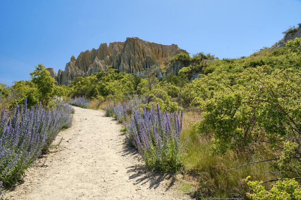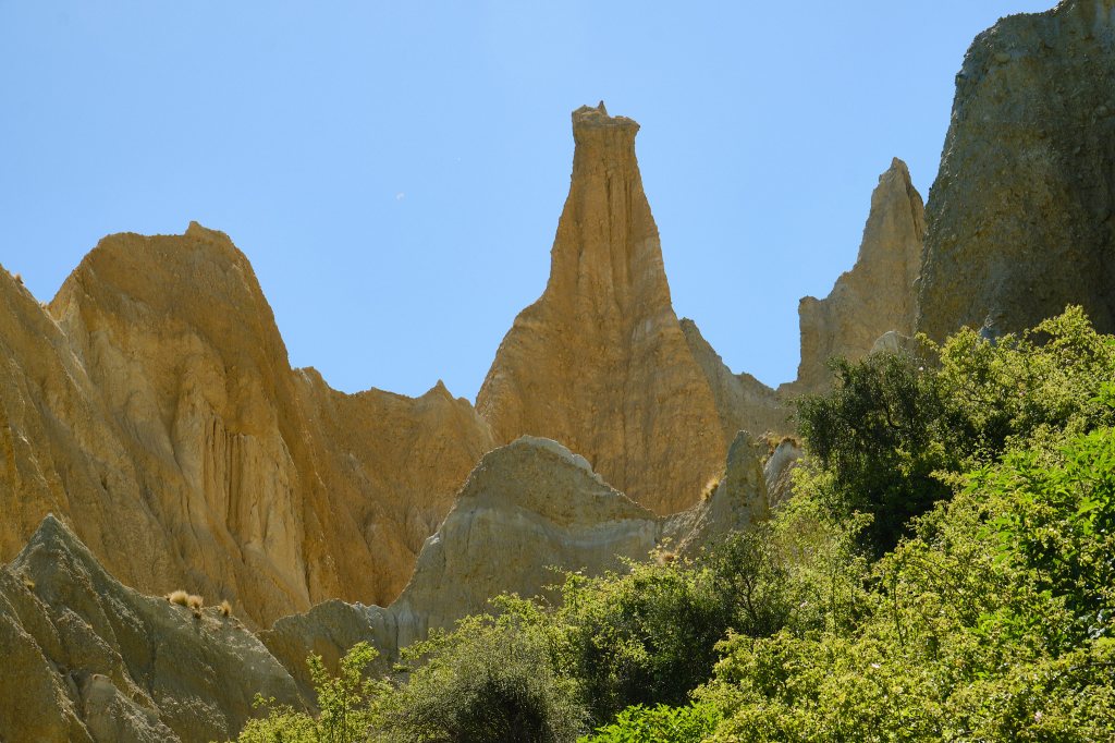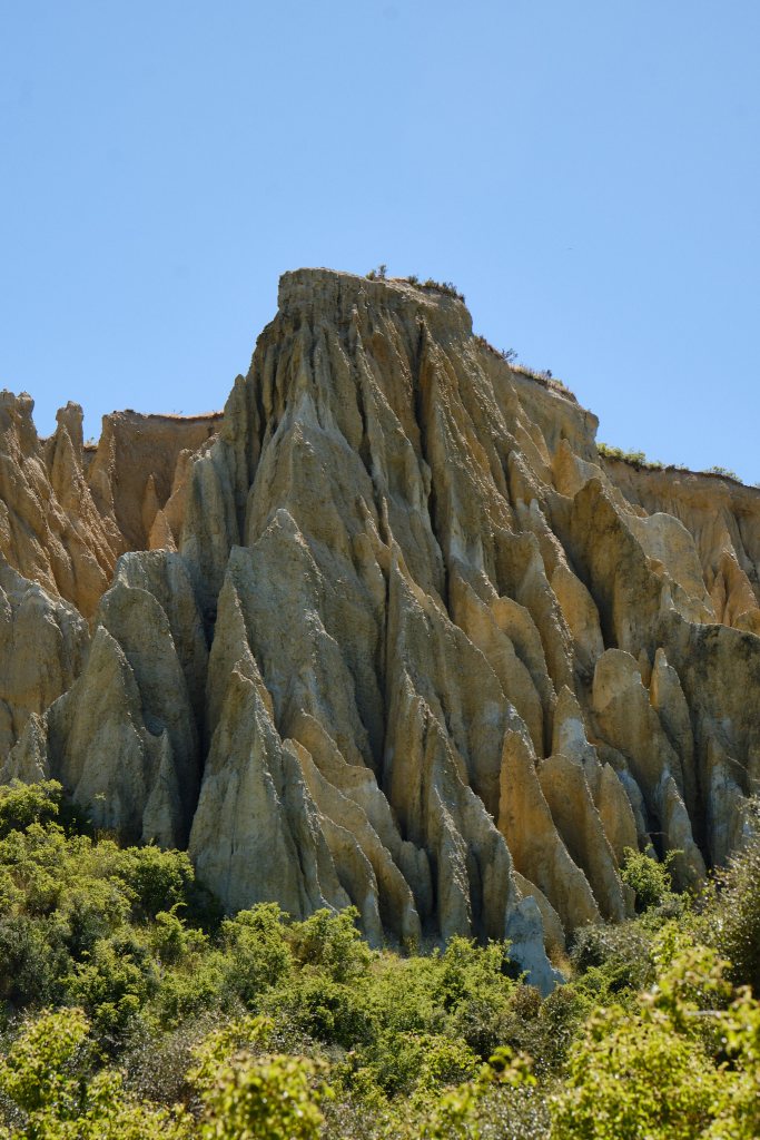 Our next stop would be The Clay Cliffs, a slight detour to an apparently rare rock formation. Now on this trip I have been lulled to sleep by turbulence over the Pacific Ocean. I have held on with my toes and knitted through the insane curves that were State Highway 4 enroute to Himetangi. I have found the crossing of the Cook Straight far too smooth for my taste. I have laughed in the splash of the speed boat race that was the Able Tasman Water Taxi. And I have walked without hanging on to the railings of the over-loaded, swinging suspension bridges on the Hooker Valley Track. But NOTHING will induce me to ever again drive on the 3.5 kilometers that was the road to and from The Clay Cliffs.