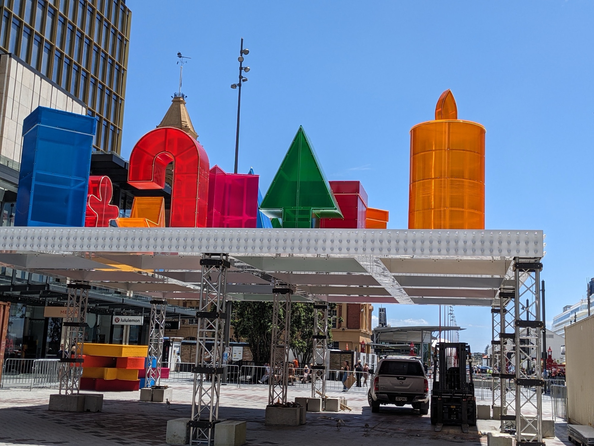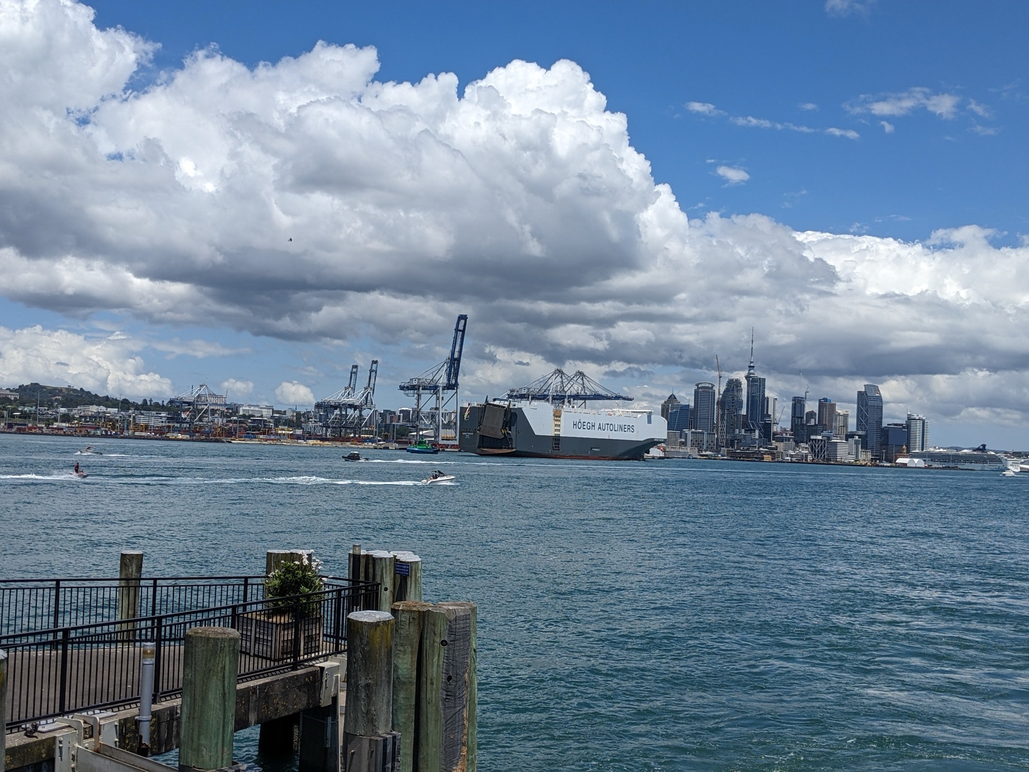 It was strange being in a city. We didn’t enjoy it. Big cities are much like each other. Same name brand stores. Traffic, crowds, pavement. There was no green. Walked into a little park heady with the scent of marigolds. Took a ferry across the harbor. Ferries are a good way to get a look at a city. From the boat Auckland looked much like Halifax.