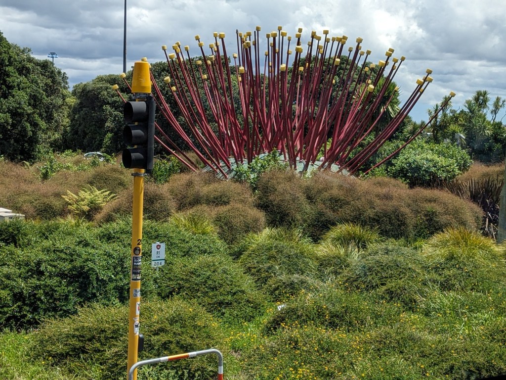 A delayed flight finally got us to Auckland where terminal signage was terrible and it took us over an hour to find the way to our Novotel that we could see was just on the other side of the airport. Checked in, our 8th floor room was luxurious, 3 times the size of Miranda, the bed twice as big. We walked across the street to the airport food court for dinner. Had some decent udon and ramen noodle soup. It was a strange experience to be walking around an airport without any luggage in tow.