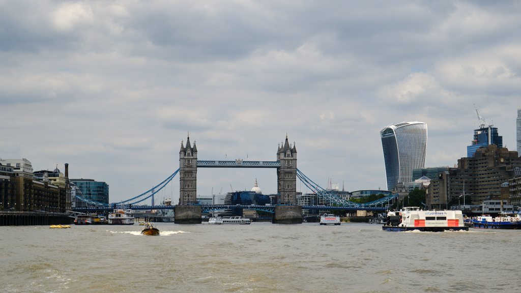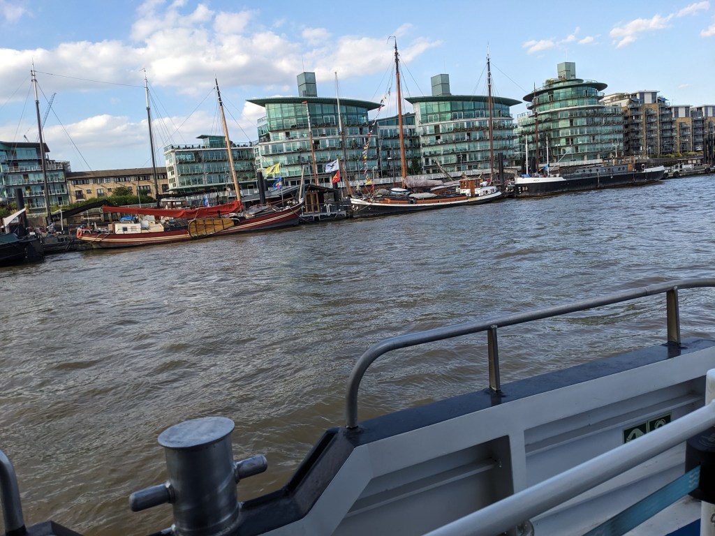 At the south bank the three of us hopped on an UberBoat (water bus) to head down the Thames. Though not technically a tour boat, it still gives great views of the city. The architecture is varied: ornate classical, post modern, curved buildings that seem sculpted in glass, apartments with little balconies of blue against red brick, others with terraces filled with trees. And amongst these The Globe Theatre, Tower of London and the beautiful Tower Bridge.