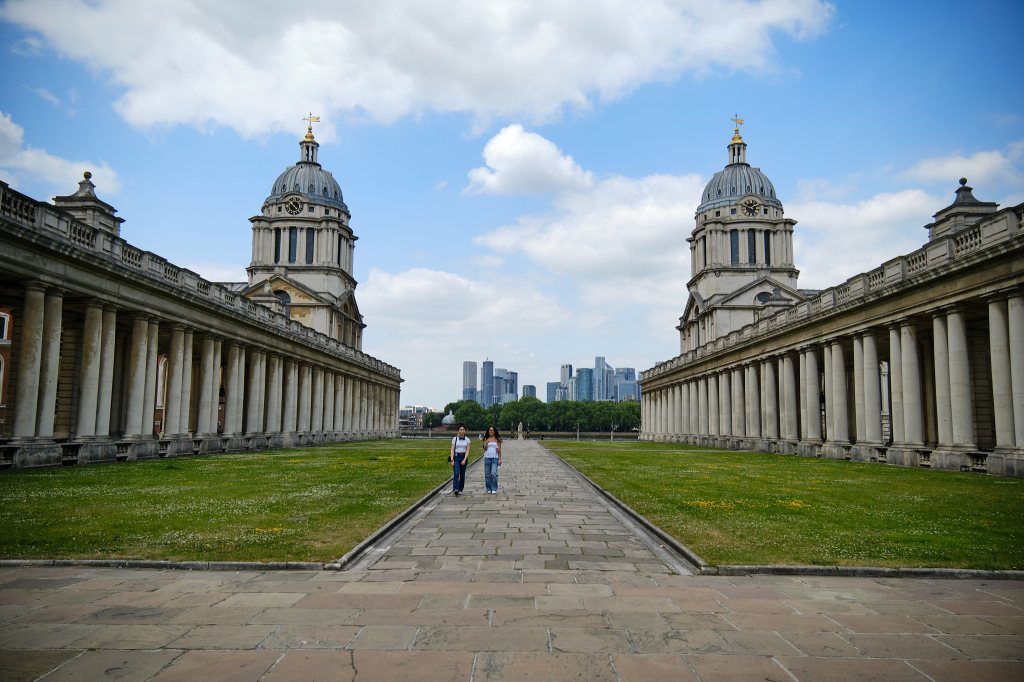 Music poured out of the windows of The Greenwich School of Music and Drama. Someone was putting a lot of energy into their piano practice. Another was singing opera. We found ourselves down a tunnel and somehow in a chapel: one of the most beautiful churches we have ever seen! A plaster ceiling in gold and blue, it almost looked like it was made of Wedgewood pottery. The entire complex we were in was at one time a hospital for military pensioners. This was their church. We were invited to the Choral Evensong late that afternoon. The choir was said to be excellent.