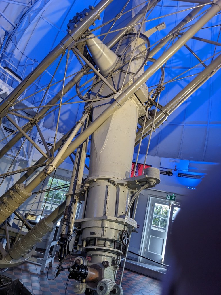 Up a staircase we found ourselves at the actual telescope. It was like stepping into an old sci-if film. The telescope filled the room top to bottom and the lighting was blue. It was quiet and cool. Once important to scientific research, this piece is still used for educational programs.