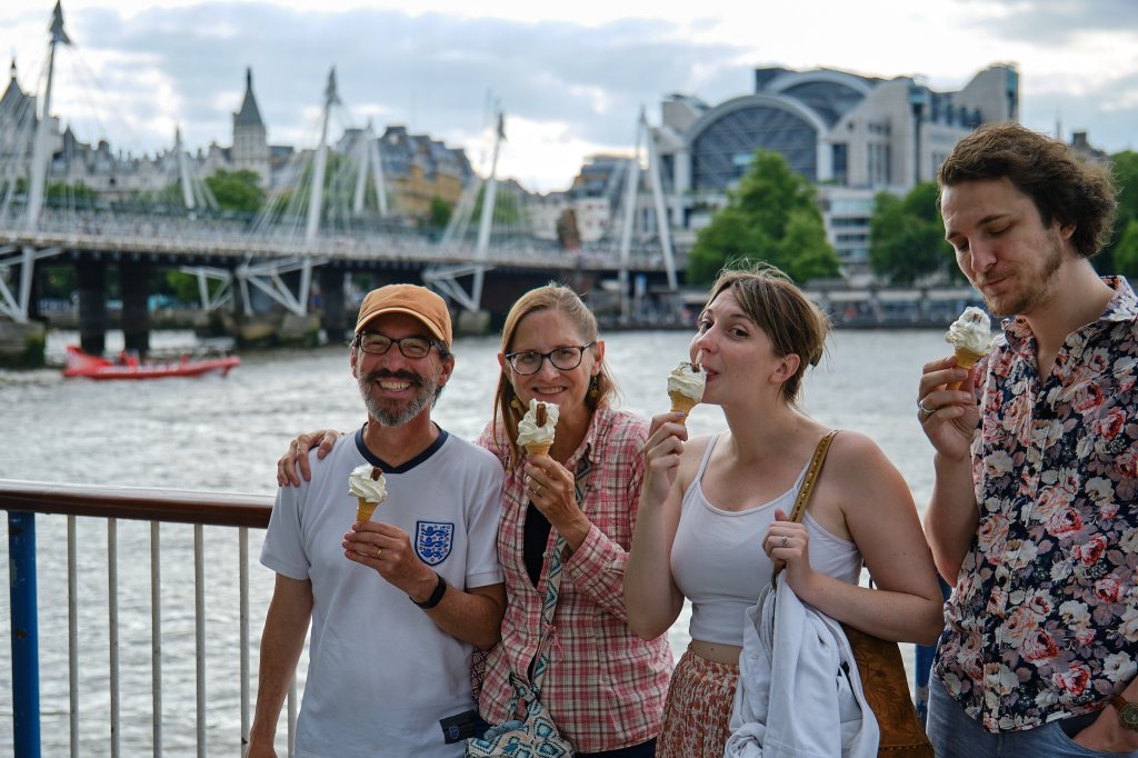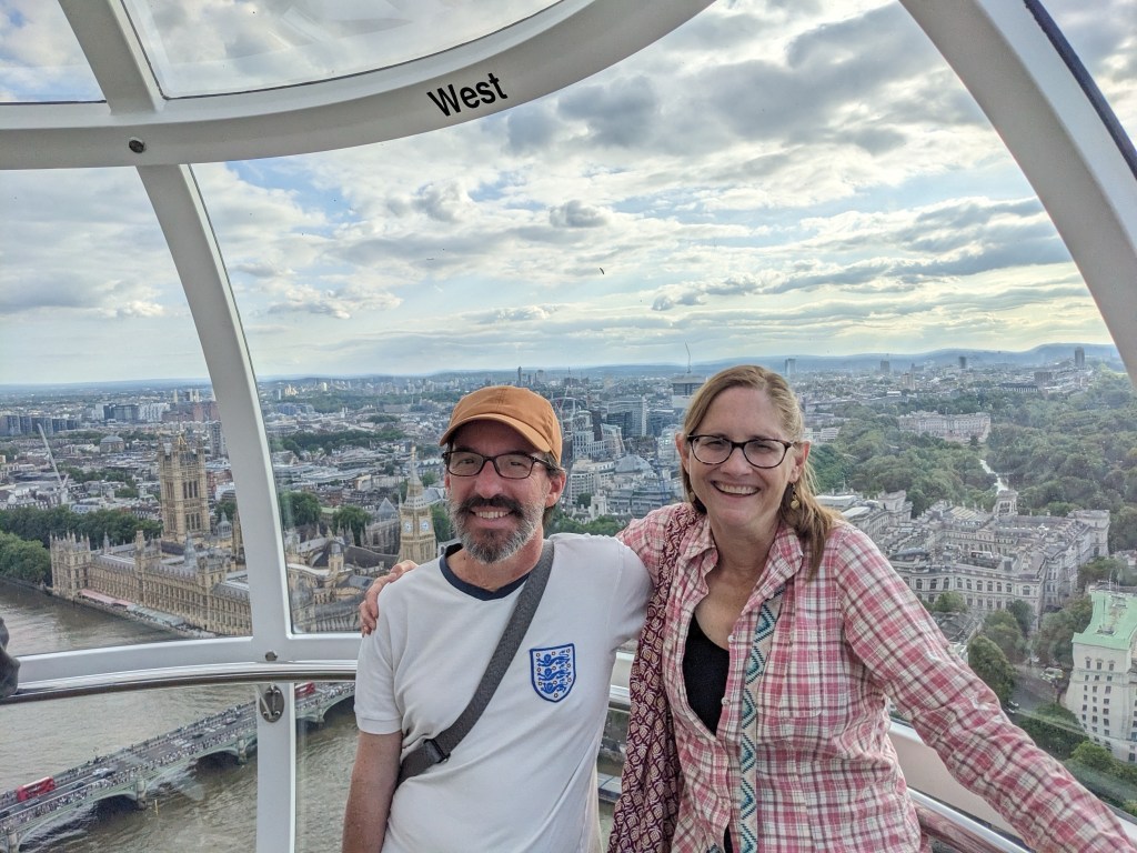 For the third time in 20 months, Mike and I are in England. This time with our son Ben, our daughter Emily and her husband David. In a few days we will celebrate the 90th birthday of Mike’s mom. But before traveling up to Glossop for the celebrations, we are spending a few days in London. I had forgotten what a fun city this. We are already having a great time.