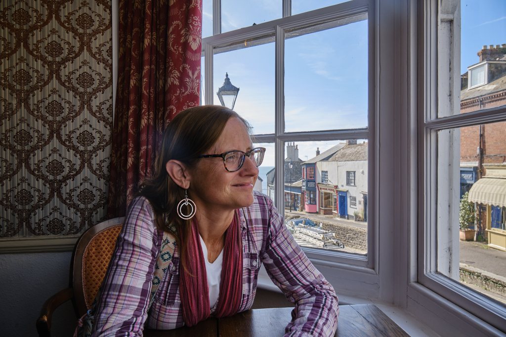Like Ann Elliot and friends we breakfasted at our inn, spreading jam on our toast and enjoying a “flipped” egg with our cups of tea. Like Ann we walked along the Cobb on a sunny morning. Looked into the clear cool sea, watched the sail boats, stepped carefully on the sloped stone wall and narrow steps. We nodded to families, and had a lovely conversation with a young couple who are fans of the same genres as we. Fortunately, we were not foolish and therefore no tragedy ensued.
