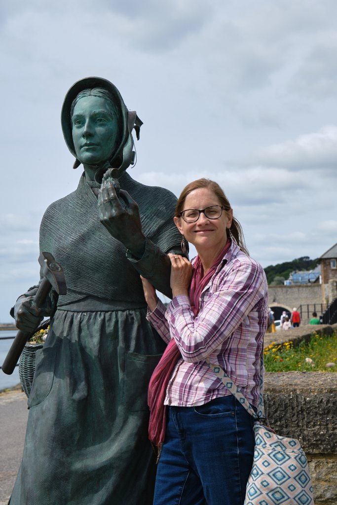 Lyme Regis is famous for an abundance of fossils. In the 19th century an intelligent woman of no education name Mary Anning dug, documented, researched, and sold fossils from the Jurassic period. They included entire dinosaurs, and lots of marine species. Much of her credit was given to others until recently. While we were there groups of students were learning and digging, and we heard an exclamation of “I found one!”.