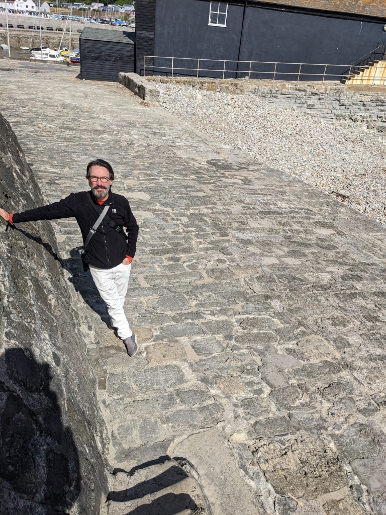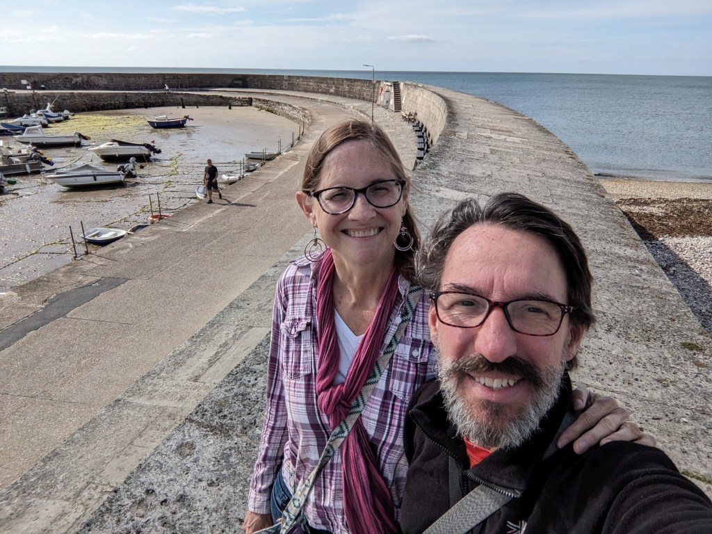 One of my favorite literary scenes is from Jane Austen’s Persuasion. A group of young friends is vacationing in Lyme Regis. In the early morning they walk along The Cobb, an inviting and dangerous looking wall along the shore. They greet each other and nod to a handsome, significant acquaintance. Later in the day in this very same spot the lovely but foolish Louisa Musgrove will say “Catch me” and tragedy will ensue. But at this moment, life is full and happy. It is these scenes that brought Mike and I to Lyme Regis.