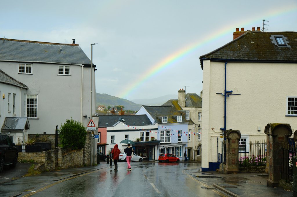 The rainbows were gone and the rain was pouring down when we arrived at our destination: Lyme Regis. Yes! We were back again so soon. Turns out it was just a two hour drive from Tintagel and three hours from Heathrow, where we were to catch our plane the next day. The Royal Lion was booked, but we did find a room at the almost-as-nice Rock Point Inn.