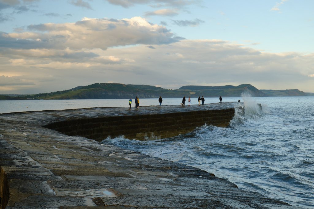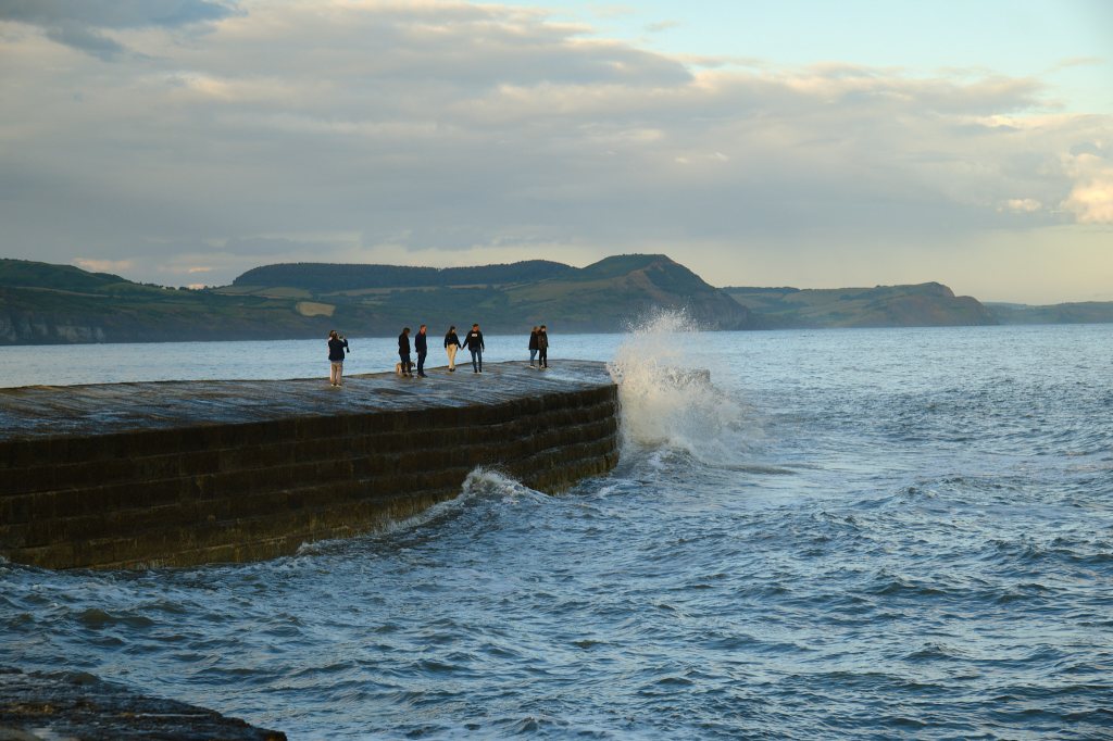 I have decided that I really like small hotels. Our room was very cozy with a view of the rolling sea and nesting pigeons. Dinner was a homey Sunday Roast with crisp Yorkshire Pudding and a Cauliflower Cheese. We walked through the rain to The Cobb where high tide and rough seas splashed above the walls. A very different, but equally nice, experience than we had had last week