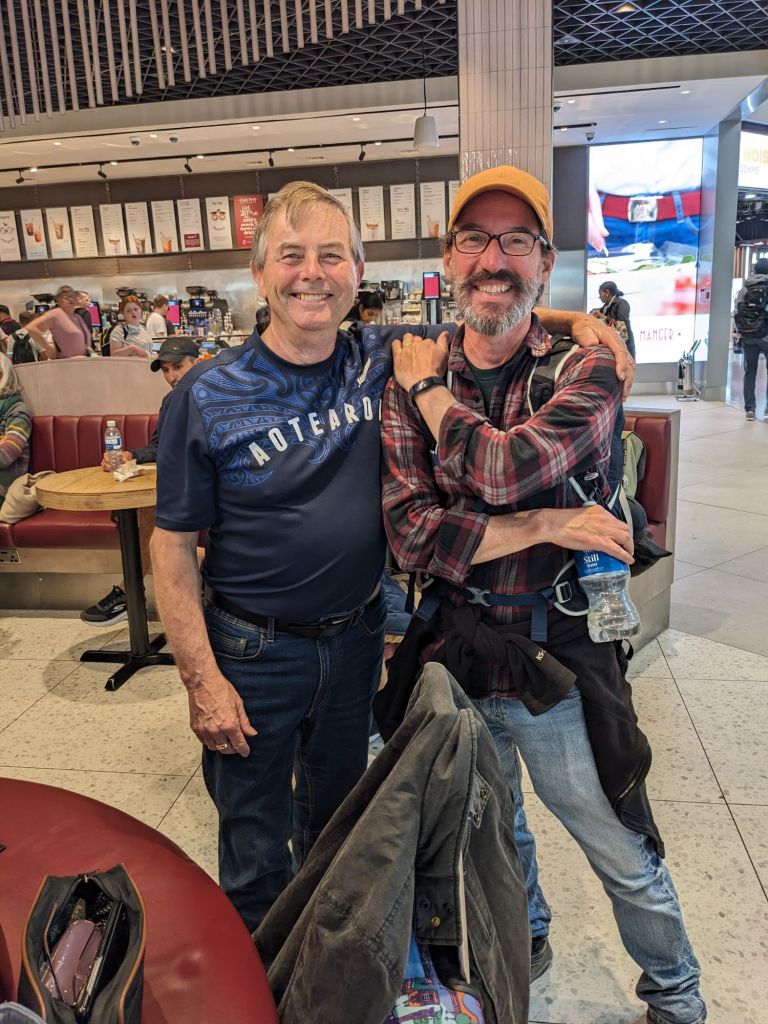 We returned our car, checked into our flight and found some lunch. Mike admired the t shirt of a fellow traveler. It said “Aotearoa”. He walked up to the man “That is the t shirt I looked all over New Zealand for!”. We got talking to James and told him how much we dearly loved his country. He lives up north of Auckland. We’ll be visiting there in 2 years, we said. James, if you are reading this, let’s keep in touch!