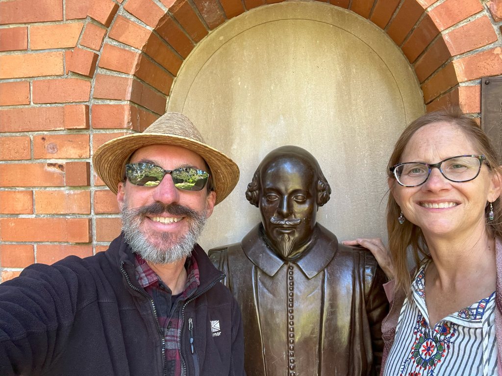 The Shakespeare Garden was just down the path. We came across friends consoling one another. Read a loving Father’s Day card withering on a bench. Spoke to a lovely park litter- collector, who years ago gave up saving the things she finds.(There are just too many. She does often read them though.) The stage in front of the bust of The Bard would be a perfect venue for Emily and her company.