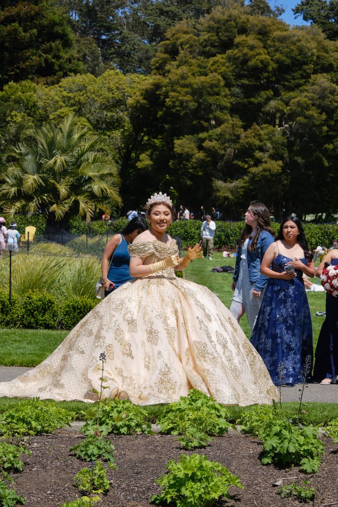 The park had everything from redwoods to fountains to desert flowers to herbs. We strolled through it all and headed for The Conservatory of Flowers, where we watched Cinderella have her wedding pictures taken. Well, maybe it wasn’t Cinderella. But the bride, dressed head to toe in gleaming gold with a wide full skirt made for dancing, she surely looked like everyone’s favorite princess. I wished her every happiness.