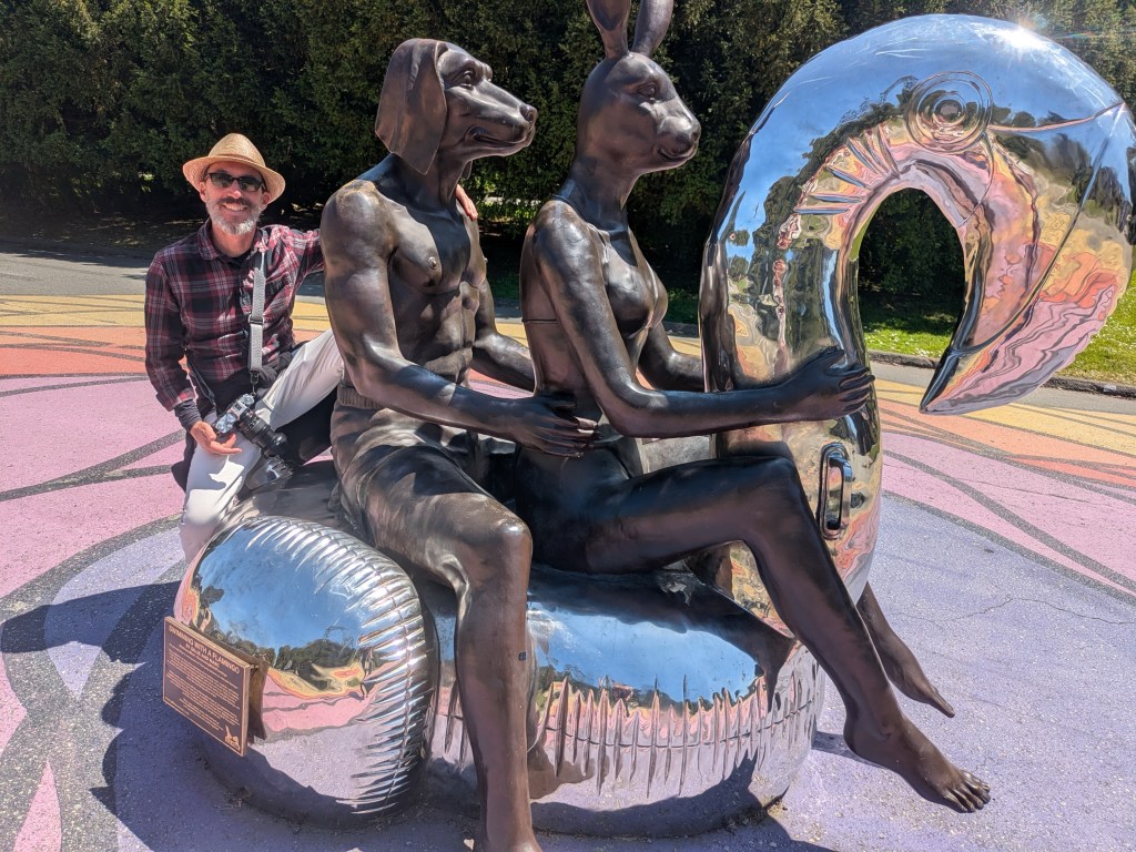 The way out of the park took us on John F Kennedy Dr, which is closed to traffic but open to bicycles going all kinds of speeds. A series of sculptures line the road, and at the entrance, a golden gate stands. There we got talking to Tony and Elise: hope you both had a GREAT time in the city!!