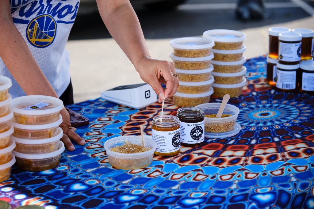 At check-in yesterday Mike noticed a sign for The Napa Farmer’s Market running today from 8am -1pm. Having a few hours before out meet up at the camp, we decided to check it out.