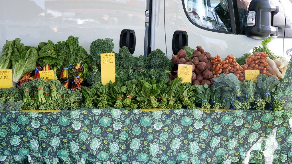 Now, you know it’s a good farmer’s market when you arrive at ten minutes after eight in the morning and can’t find a parking space. Heading down Main Street in search of a spot, we saw lots of people with baskets and grocery bags in hand. This was going to be something.