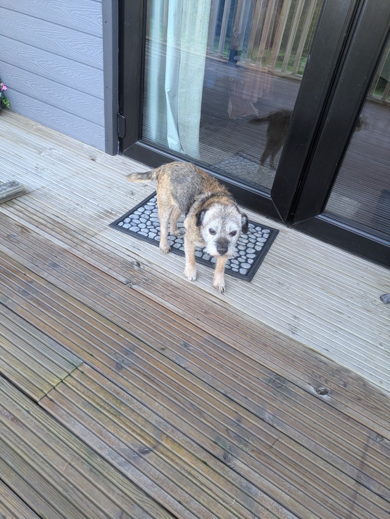 Patch the pup has found another sheep’s ear to snack on. His equally scruffy and adorable little friend has run up to me for some scratches. I happily oblige.