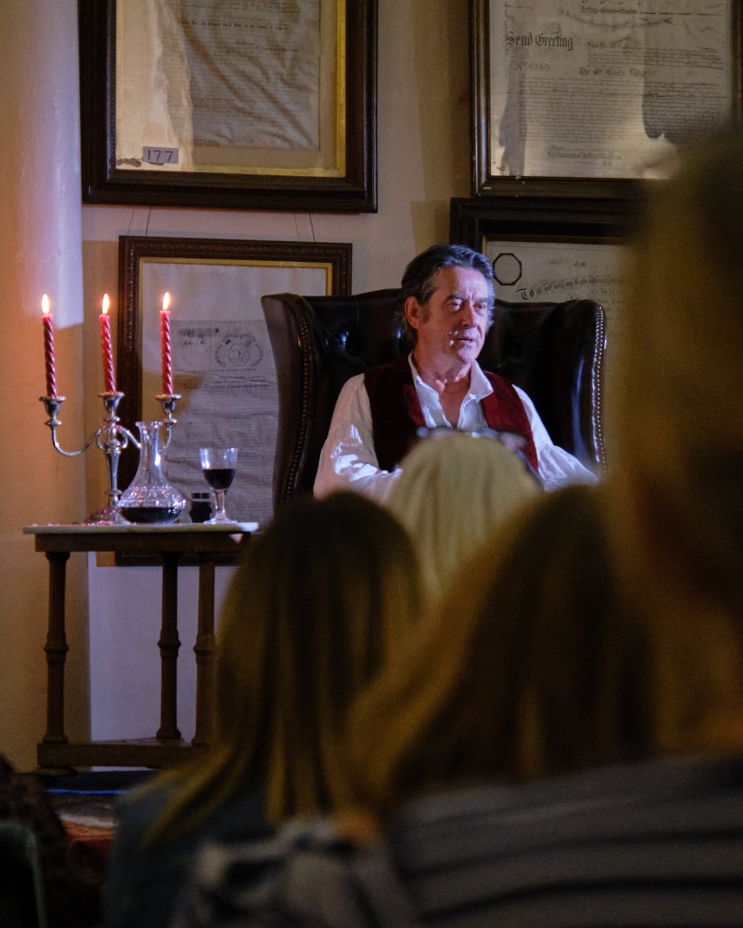 Being Mr. Wickham, a play written and performed by Adrian Lukas, famous for the role in the iconic Pride and Prejudice series of 1995, was absolutely wonderful. Relaxing in his study, Wickham shared with us his musings on this, his 60th birthday. He set the record straight on the misunderstandings written in the story we know so well, and filled us in on what he and his wife Lydia have been up to since then. It was not all pleasant, but the couple certainly have found their way in the world. Wickham remains as charming and roguish as ever.